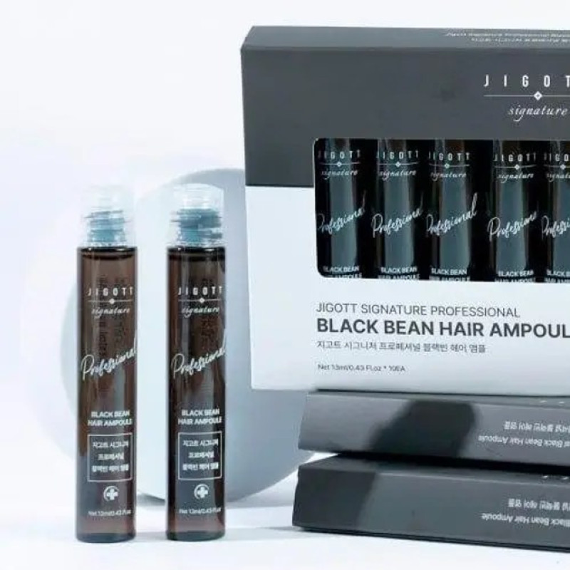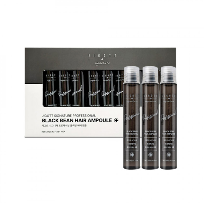 Ампула Jigott Signature Professional Black Bean Hair Ampoule - це засіб для дбайливого догляду за волоссям, який дарує професійну процедуру, яку можна робити вдома. Після першого застосування волосся буде виглядати доглянутим і яскравим, а після тривалого користування буде тривалий ефект. Основним компонентом є екстракт чорної сої - живить і відновлює волосся за допомогою свого складу із вітамінів і мінералів. Також чорна соя стимулює ріст нового волосся і зміцнює волосяні фолікули. Рослинні екстракти володіють заспокійливими і протизапальними властивостями, зменшують подразнення шкіри голови, запобігають ламкості волосся і посіченості кінчиків. Ампула створює невидиму плівку, яка захищає від впливу зовнішніх факторів і високих температур під час укладання волосся. Засіб від Jigott буде ідеальним вибором для відновлення, зміцнення і надання волоссю здорового блиску.