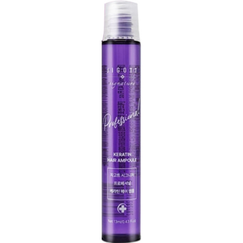 Ампули Jigott Signature Professional Keratin Hair Ampoule - ефективний варіант для зміцнення і відновлення волосся. Склад ампули перетворює сильно пошкоджені локони на доглянуте, здорове волосся. Активним компонентом ампул являється кератин - це природний білок, він допомагає заповнювати пошкодження в структурі волосся, відновлює цілісність волосин і еластичність. В складі є рослинні екстракти - натуральні поживні речовини, вони живлять волосся і сприяє збереженню вологи в волоссі. Після використання ампул волосся стає гладеньким і доглянутим, однак регулярне використання може зробити волосся шовковистим, захищеним від зовнішніх чинників і втрати вологи. Засіб від Jigott зробить волосся блискучим, еластичним і здоровим на вигляд.