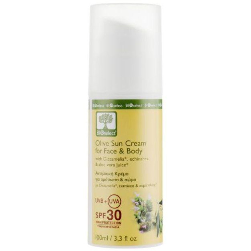 Оливковий сонцезахисний крем для обличчя і тіла Bioselect Olive Sun Cream For Face & Body SPF30 100ml