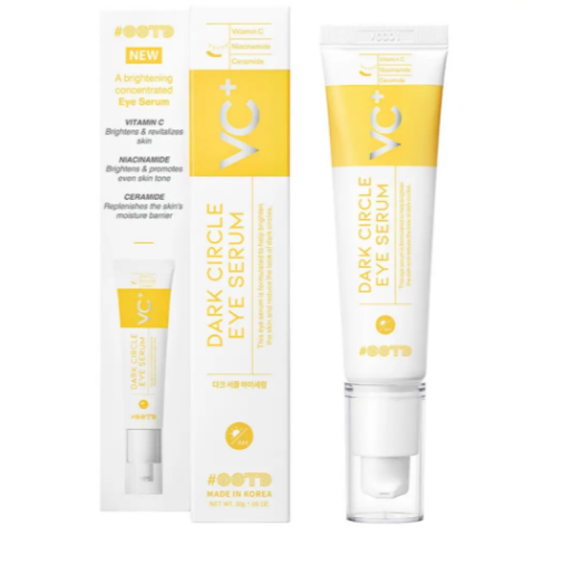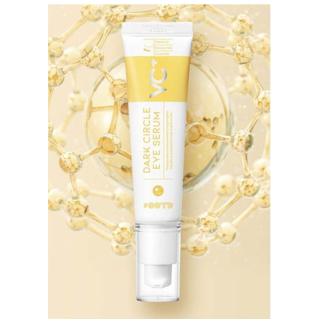 Сироватка Dark Circle Eye Serum - забезпечить дбайливий догляд та відновлення за зоною навколо очей. В ній поєднується вітамін С, ніацинаміди та кераміди, які інтенсивно борються з темними колами, набряком та втратою пружності. Вітамін С - потужний антиоксидант, який освітлює шкіру, стимулює вироблення колагену і залищає від впливу факторів з навколишнього середовища. Ніацинамід - покращує тон і текстуру шкіри, зменшує пігментацію, бореться з тьмяністю і зміцнює захисний бар'єр. Кераміди - відновлюють ліпідний бар'єр, утримують вологу і сприяють омолодженню і гладкості шкіри. Сироватка діє на шкіру миттєвим зволоженням і розгладженням, зменшенням темних кіл, підвищенням еластичності шкіри і антиоксидантним захистом. Засіб від OOTD - ідеальний засіб для тих, хто хоче виглядати свіжо, бадьоро і без зайвих зусиль.