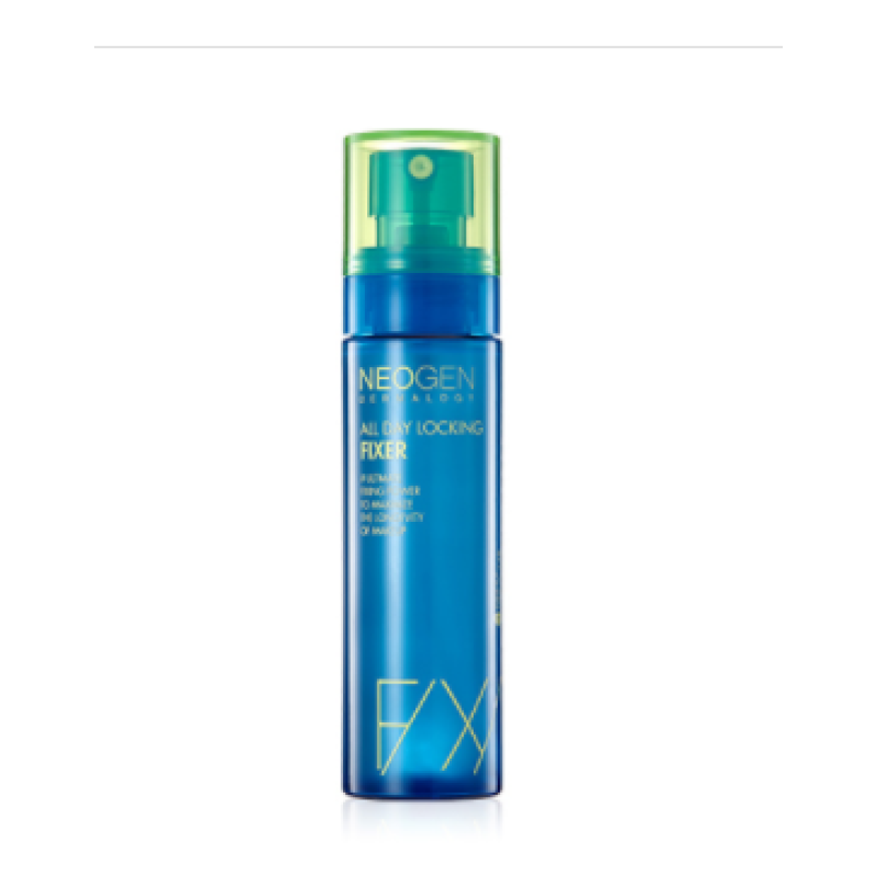 У складі Neogen Dermalogy All Day Locking Fixer знаходяться полімери. Вони утворюють зволожений шар на поверхні та створюють захисну плівку. Косметика стає стійкою до високої температури та вологи. Пантенол та ромашка нормалізують водний баланс, а зелений чай, полин, алое віра – заспокоюють. Листя чайного дерева та м'яти регулюють вироблення шкірного сала.