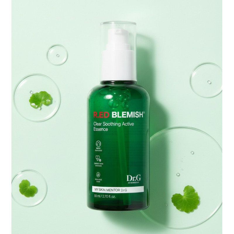 Есенція Dr.G R.E.D Blemish Clear Soothing Active Essence — це концентрований засіб екстреної допомоги для реактивної, чутливої та схильної до висипань шкіри. Продукт від відомого корейського бренду Dr.G розроблений для миттєвого зниження температури подразненого епідермісу, зняття свербежу та зменшення почервонінь. Висока концентрація заспокійливих компонентів робить цей засіб ефективнішим за звичайну емульсія, оскільки активні речовини проникають глибше, прискорюючи процеси регенерації. Есенція ідеально підходить для відновлення шкіри після агресивних косметологічних процедур, тривалого перебування на сонці або під час загострення акне, повертаючи обличчю здоровий вигляд та рівний тон.