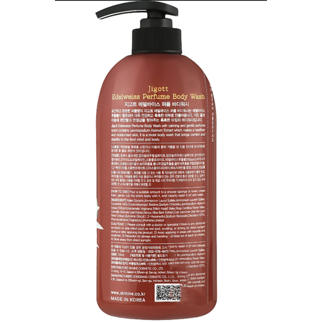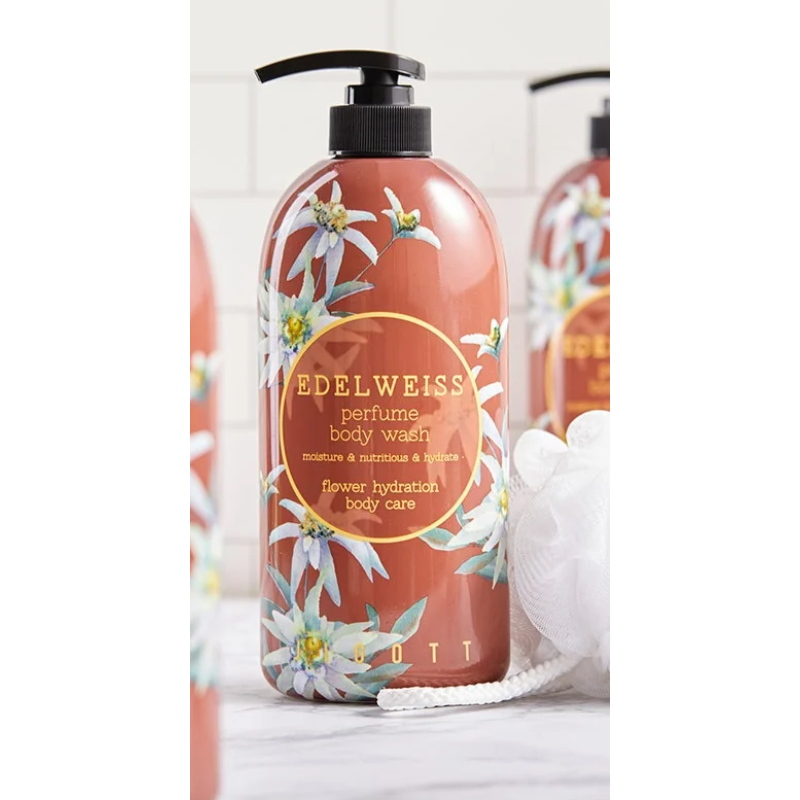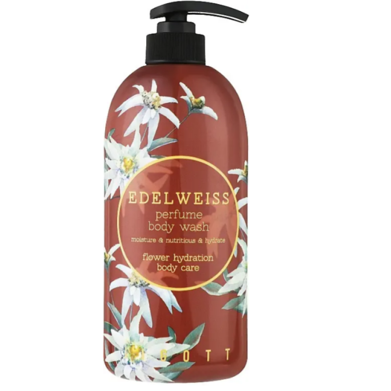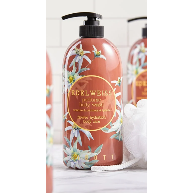Гель для душу Edelweiss Perfume Body Wash - ніжно очищує шкіру, утворює м'яку піну та дбайливо прибирає забруднення, не порушуючи структуру шкіри. Гель, наповнений ароматом едельвейса, який створює легкий, квітковий із тонкими нотками свіжості аромат. Він огортає тіло делікатним шлейфом, залишаючи приємне відчуття витонченості та комфорту на цілий день. Формула гелю створена для зволоження і пом'якшення шкіри. Після душу шкіра стає ніжною, гладенькою, еластичною і приємною на дотик. Засіб здатен відновити пошкоджені ділянки шкіри та підняти настрій після прийняття душу. Екстракт едельвейса відомий високим змістом антиоксидантів, насичує шкіру вітамінами та цінними речовинами. Засіб від Jigott це не просто засіб гігієни, а і справжній ритуал для релаксу і відновлення.