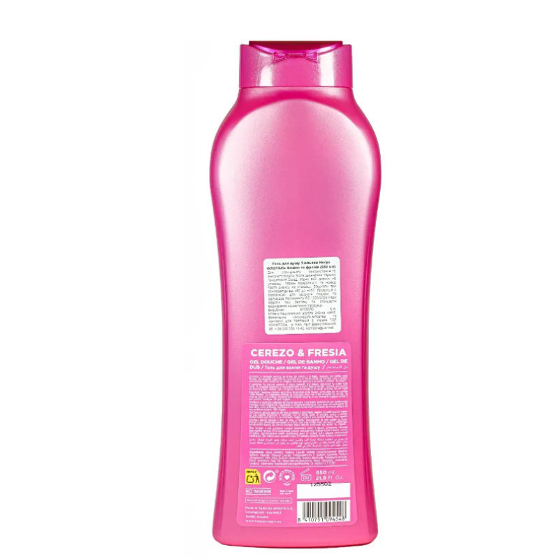 Гель для душу Вишня та фрезія - має витончений аромат, який доповнений м'якими фруктовими нотами, які легко відкриваються у піні, створюючи ніжність, чистоту та відчуття свіжості. Гель дбайливо очищає шкіру та зволожує, роблячи шкіру м'якою та шовковистою. Аромат поєднує в собі есенцію вишневого цвіту з витонченою фрезією, перетворюючи кожне прийняття душу на чарівну мить завдяки своєму екзотичному звучанню. Гель має антиоксидантні та відлущувальні властивості, завдяки яким шкіра стає гладенькою, шовковистою та пружною. Засіб допомагає попередити передчасне старіння шкіри, даруючи її свіжість та здоровий вигляд. Гель від Tulipan Negro наповнює тіло енергією та бадьорістю, залишаючи приємний аромат, який підтримує в тонусі цілий день.