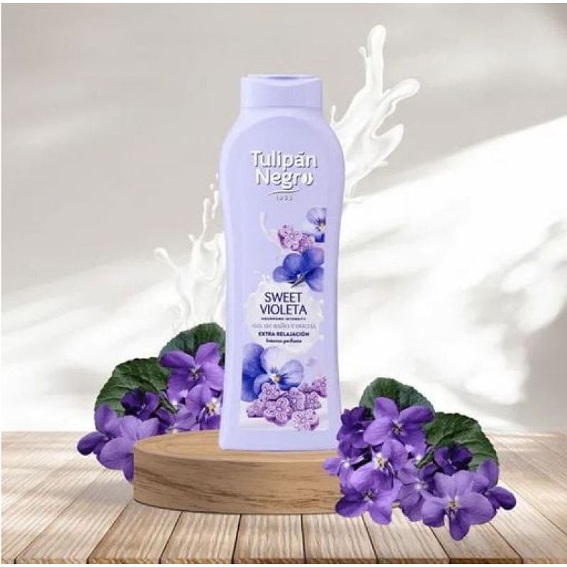 Гель для душу Солодка фіалка - засіб, створює світ ніжності та чарівності, бо щоденний догляд перетворюється на момент релаксу та насолоди. Засіб має кремову структуру, що дбайливо очищає шкіру, зберігає природний баланс мікробіому, а насичений аромат огортає тіло хвилею свіжості та чуттєвості. Гель розроблений для глибокого живлення, зволоження та захисту шкіри. В складі є очищувальні компонент, які ефективно видаляють забруднення та надлишки себуму, зберігаючи природну ніжність та сяйво шкіри. Засіб має кремову консистенцію і розкішний запах з нотками фіалки, карамелі та вершкованого масла. Засіб зберігає оптимальний водний баланс шкірного покриву, запобігаючи сухості та стягності. Гель від Tulipan Negro зміцнює природний захисний бар'єр епідермісу, тонізує та освіжає, залишаючи приємне відчуття комфорту на цілий день.