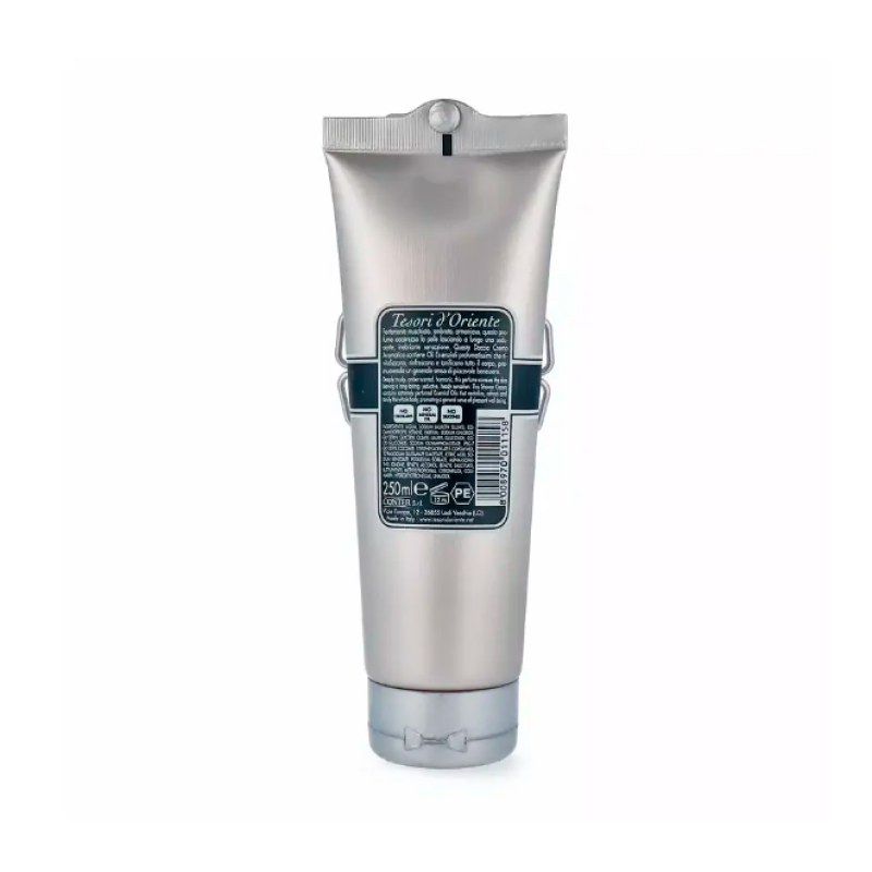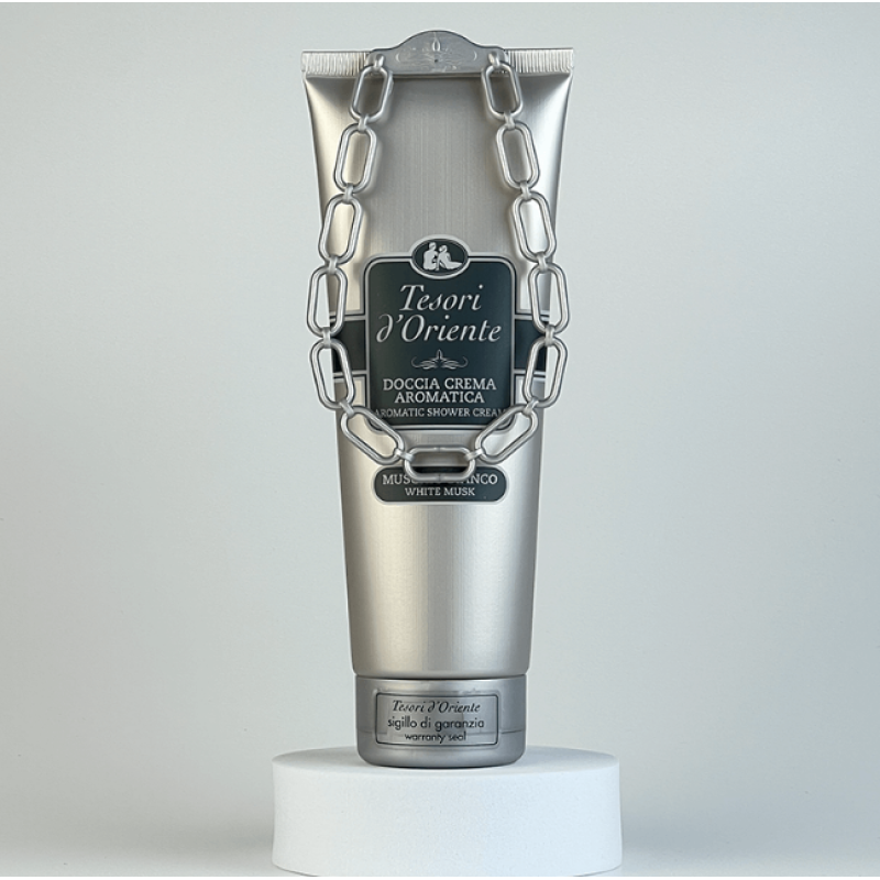 Гель для душу Muschio Bianco - дарує шкірі делікатне очищення та огортає її вишуканим ароматом білого мускусу, ванільних ягід, троянд та східних прянощів. Під час контакту з водою засіб утворює м'яку, кремову піну, яка ефективно видаляє повсякденні забруднення, не пересушуючи шкіру. Формула засобу допомагає підтримувати природний водний баланс, не викликаючи подразнень і даруючи приємні відчуття під час та після прийняття душу. Ароматична композиція відкривається ніжними нотками іланг-ілангу та троянди, а також доповнюється акордами фрезії, жасмину та гвоздики. Завершується аромат нотами білого мускусу, бобів тонка та ванілю. Гель від Tesori d’Oriente дарує тілу чистоту, загальне відчуття комфорту, м'якість та аромат.