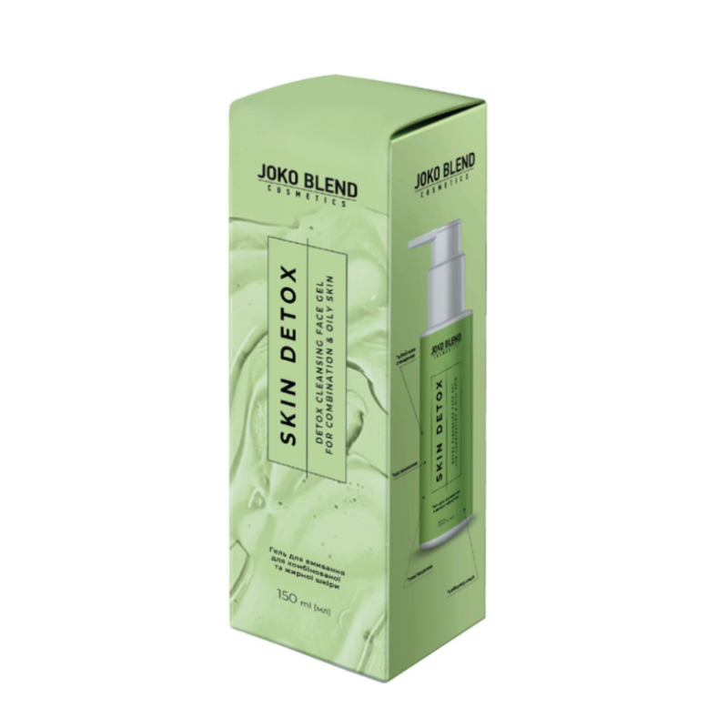 Гель для вмивання Skin Detox створений для ефективного очищення від забруднень і надлишку себуму, не порушуючи природний захисний бар'єр. Завдяки комплексу активних компонентів гель не лише очищує, а й забезпечує повноцінний догляд: нормалізує роботу сальних залоз, зменшує жирний блиск, заспокоює запалення та підтримує оптимальний рівень зволожувальності. В складі ніацинамід - зміцнює захисний бар'єр шкіри, підвищує її пружність та еластичність, зменшує почервоніння та запалення. Цинк - має потужну протизапальну та себорегулювальну дію, сприяє освітленню та вирівнюванню тону шкіри. Екстракт ламінарії тонізує, активізує обмінні процеси, підвищує пружність та зволоженість шкіри. Алантоїн - пом'якшує, заспокоює та стимулює регенерацію тканин. Пантенол утримує вологу, зменшує подразнення та сприяє відновленню шкіри. Гель для вмивання від Joko Blend делікатно очищує шкіру та пори, зменшує жирний блиск та запалення.