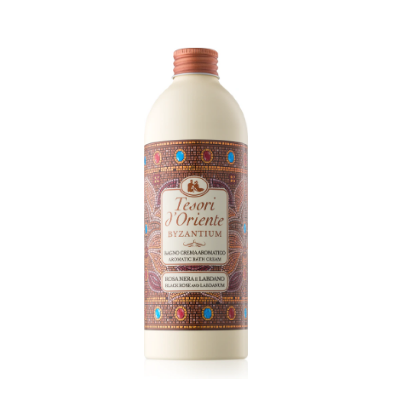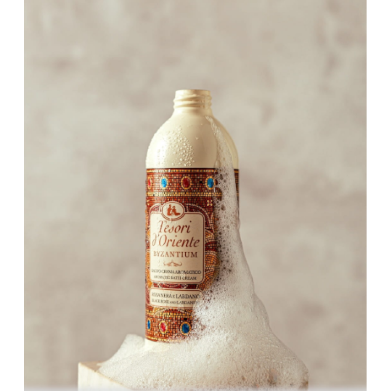 Гель-піна Byzantium - перетворює щоденне очищення на ритуал насолоди. Засіб має ніжну кремову текстуру, яка з водою утворюються на оксамитову піну, що делікатно очищує шкіру, зволожує її та дарує відчуття комфорту без стягнутості. В складі є касторова олія - інтенсивно зволожує, живить шкіру, пом'якшує та допомагає усунути сухість та лущення шкіри. Молочна кислота м'яко відлущує ороговілі клітини, сприяє оновленню шкіри, покращує текстуру та вирівнює тон. Засіб володіє вишуканим ароматом, який складається з ноток чорної троянди та доповнюється солодкими відтінками кориці, терпкими акордами миндаля та какао. Гель-піна має аромат, який показує велич та магію стародавньої Візантії. Засіб від Tesori d`Oriente має елегантний дизайн флакона з мозаїчними мотивами, що підкреслює його східний аромат.
