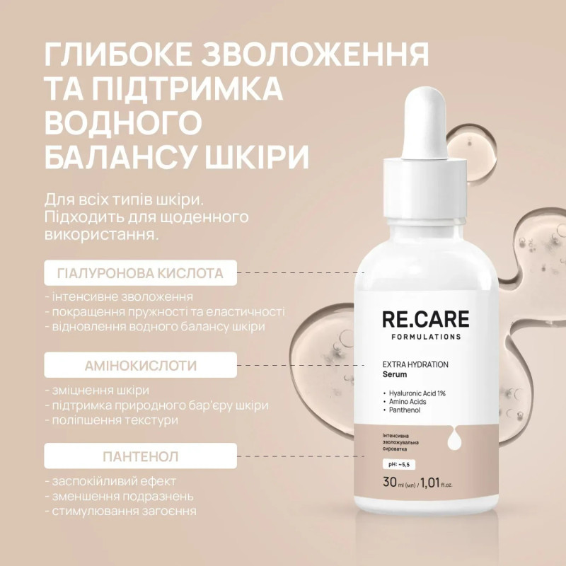 сироватка Extra Hydration Serum Re.Care — це щоденне зволоження та відновлення