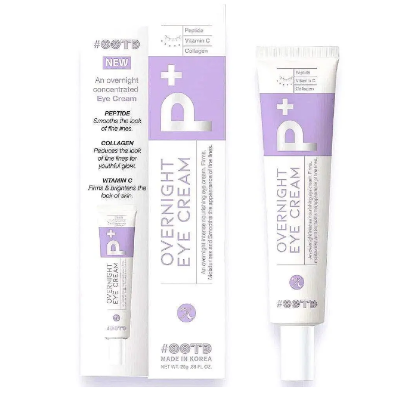 Нічний крем OOTD Overnight Eye Cream - створений для інтенсивного догляду навколо очей. Його легка текстура сприяє глибокій регенерації під час сну, даруючи зранку відкритий, яскравий і свіжий погляд. В складі є пептиди, вітаміни і колаген, крем комплексно впливає на ознаки старіння. Пептиди - стимулюють оновлення клітин, підвищують пружність та тонус, зменшують запалення й почервоніння, підтримують молодість шкіри. Вітамін С - потужний антиоксидант, який освітлює пігментацію, вирівнює тон і дарує шкірі здорове сяйво. Колаген - ущільнює епідерміс, зволожує і підвищує еластичність, забезпечує гладкість та сяйво. Після користування нічним кремом, шкіра стає мякою, а після тривалого користування зявляється ефект підтягнутості і доглянутої зони навколо очей. Засіб від OOTD піклується про молодість шкіри, він зменшує темні кола, знімає набряки, розгладжує зморшки і укріплює досягнутий результат.