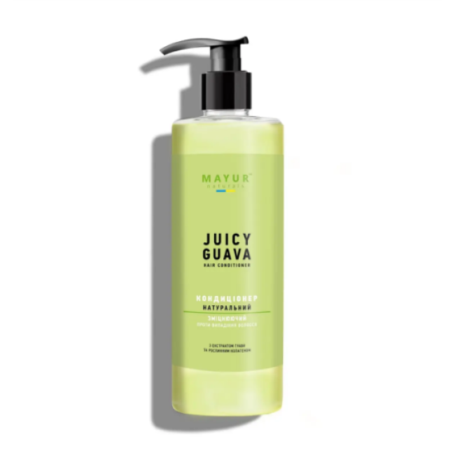 Кондиціонер Гуава засіб, створений на основі високоякісної органічної речовини та дбайливо доглядає за волоссям. В складі є екстракт гуави - справжній вітамінний коктейль, багатий на вітаміни A, B, C та K, які інтенсивно живлять волосся. Органічний екстракт кокоса- глибоко зволожує, допомагає утримувати вологу всередині волосся та покращує його структуру. Після користування волосся стає більш еластичним, міцним і захищеним від негативного впливу навколишнього середовища. Кондиціонер полегшує розчісування, зменшує ламкість і пухнастість, наповнює волосся природним блиском та життєвою енергією. Засіб від Mayur має п'янкий аромат стиглої гуави, що довго огортатиме відчуттям свіжості та тропічного релаксу.