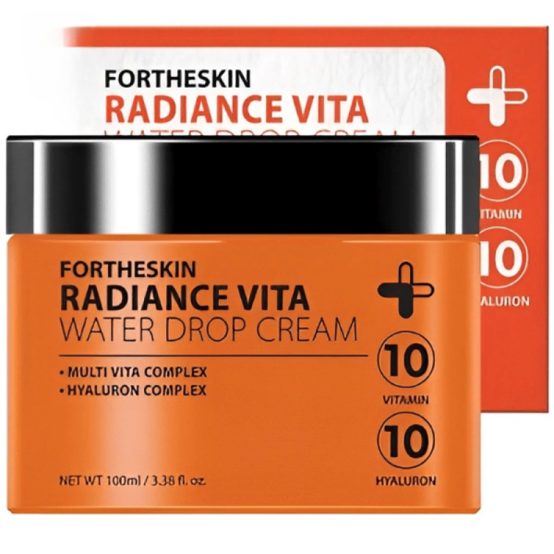 Крем для обличчя Radiance Vita Water Drop Cream - допомагає вирівняти тон шкіри, наповнює шкіру блиском, бореться з тьмяністю шкіри і покращує колір обличчя. В складі є вітамін С, який проявляє свою антиоксидантну дію, захищає шкіру від ультрафіолетових променів, підвищує еластичність і пружність. Пробіотики - допомагають підтримувати здоровий мікробіом шкіри, зменшує прояви акне, подразнення і алергічні реакції. Гіалуронова кислота- підтримує оптимальний рівень зволоження, зберігає пружність і еластичність шкіри. Крем зміцнює захисний бар'єр шкіри, сповільнює процеси старіння і захищає від фотостаріння. Засіб від Fortheskin здатен боротися з багатьма проблемами, робити шкіру зволоженою, сяючою, пружною і захищати від зовнішнього середовища.