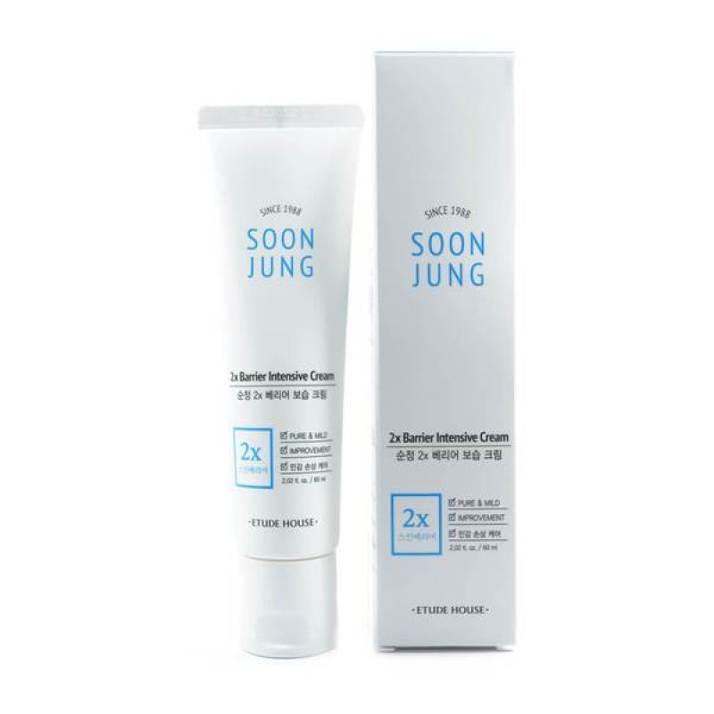 Крем для обличчя Etude House Soon Jung 2x Barrier Intensive Cream - стане рятувальником для власниць чутливої шкіри. Він якісно заповнює нестачу вологи, відбудовує захисний бар'єр епідермісу, позбавляє подразнень, знижує чутливість, дарує епідермі комфорт та здоровий вигляд.