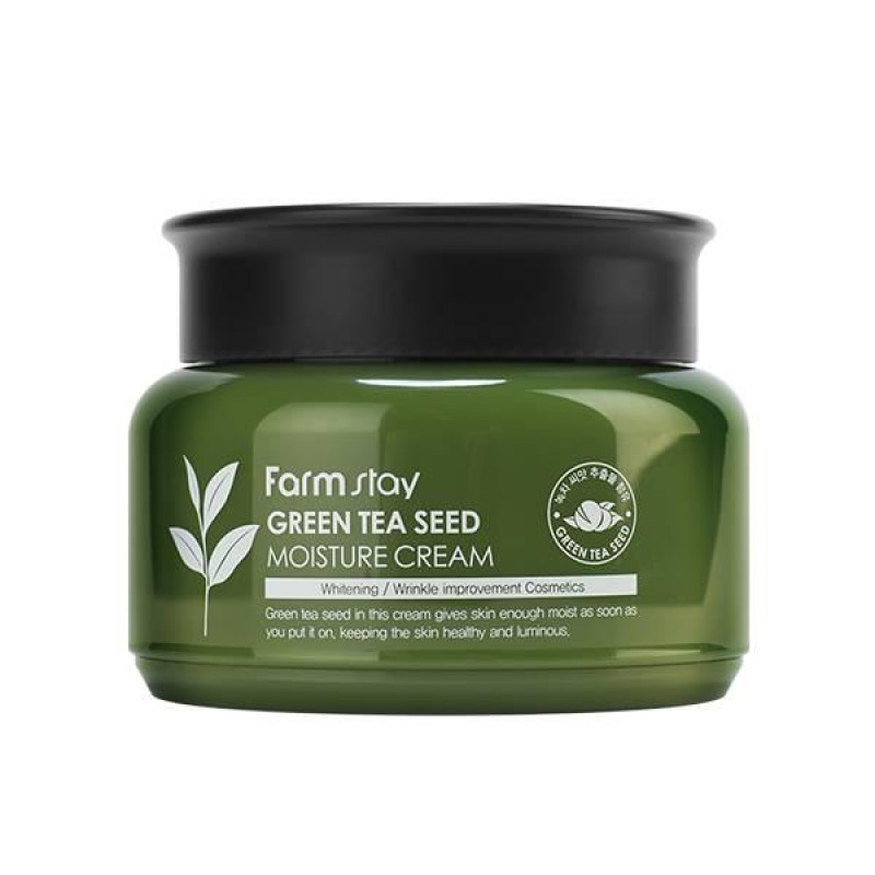 Крем для обличчя FarmStay Green Tea Seed Moisture Cream - має потужну зволожуючу дію, зміцнює імунітет шкіри, активно заспокоює, знімає набряклість, підвищує тонус і стійкість до стресу дерми.