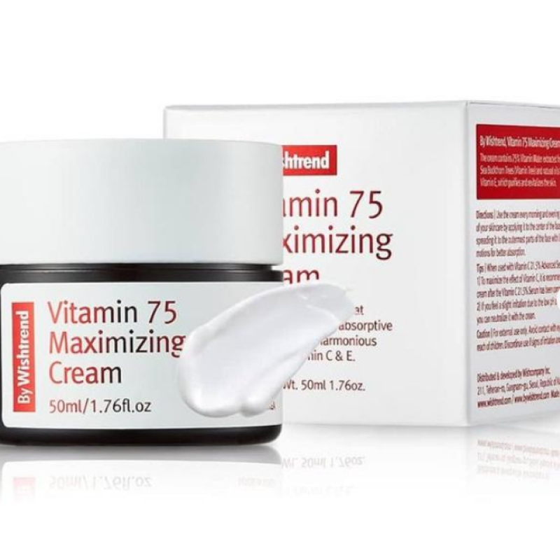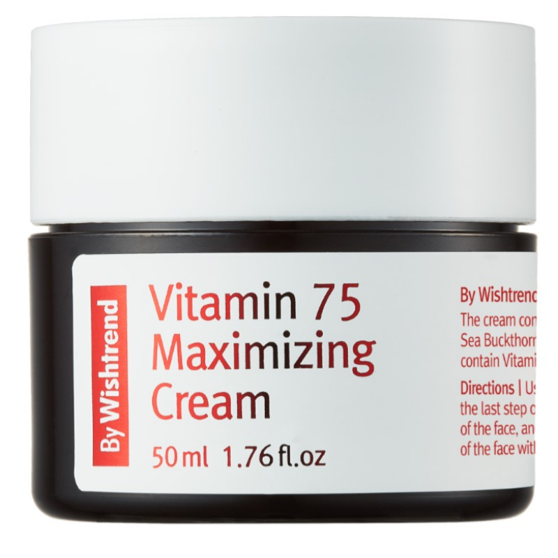 Крем Vitamin 75 Maximizing Cream - це справжній еліксир для втомленої, подразненої або зневодненої шкіри. В складі засобу є 75 % гідролату обліпихи, який інтенсивно заспокоює, живить та пришвидшує загоєння шкіри. Засіб відновлює гідроліпідний бар'єр, забезпечує глибоке живлення без перезавантаження шкіри. Підвищує пружність та зменшує зморшки, шкіра стає підтягнутою та має свіжий вигляд. Крем стимулює регенерацію шкіри, запускає природні процеси відновлення епідермісу. Крем працює над усуненням почервоніння, запалень та подразнень, підходить навіть для чутливої шкіри. Засіб від By Wishtrend підійде для чутливої шкіри, надаючи їй м'якість, пружність та природне сяйво.