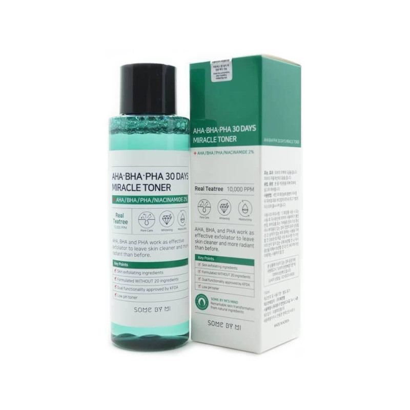 Тонер SOME BY ME AHA-BHA-PHA MIRACLE Toner – це унікальний засіб, який поєднує кілька видів кислот, вони допомагають за короткий термін позбутися шкірних недоліків, вирівняти тон і підтягнути овал обличчя.