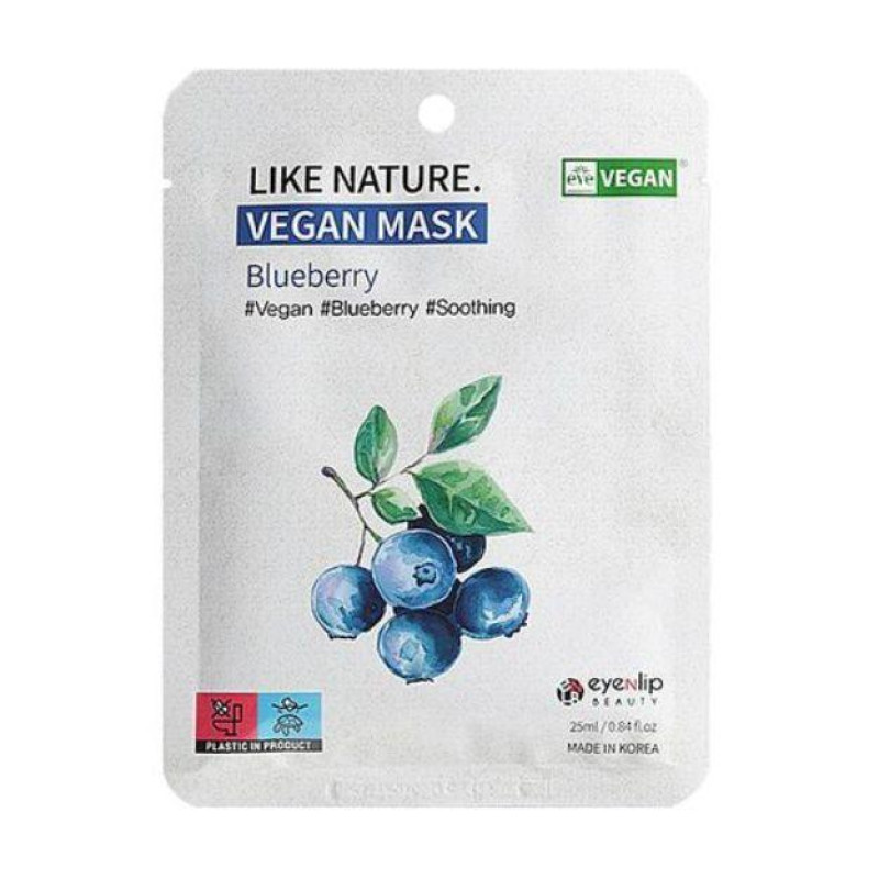 Тканинна маска для обличчя з екстрактом чорниці Eyenlip Like Nature Vegan Mask Pack # Blueberry x 1e