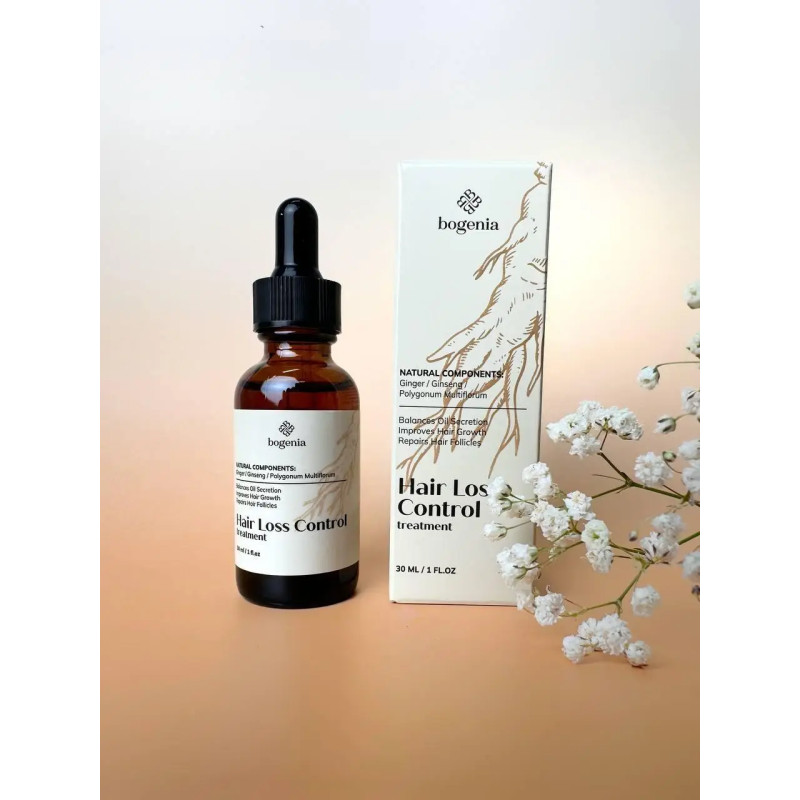 Сироватка Hair Loss Control Tretment Bogenia BG415 №003 - важливий компонент для боротьби з послабленим і схильним до випадіння волоссям. Сироватка володіє концентрованою формулою. що забезпечує інтенсивне укріплення коренів, стимулює ріст і відновлює структуру волосся. Засіб доповнений дозатором-піпеткою для економного використання засобу. В складі міститься бетаїн та натуральні екстракти кореня імбиру, женьшеню і горця.Засіб від Bogenia легко розподіляється, миттєво вбирається і залишає жирного блиску. Сироватка не обтяжує локони, а додає натуральної густини та підвищу еластичність локонів. Вона глибоко проникає, відновлює структуру, дає активацію волосяним фолікулам і стимулює ріст нового волосся.