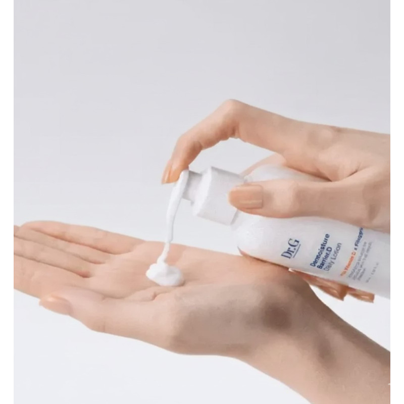 Лосьйон Dr.G Dermoisture Barrier D Daily Lotion — це інноваційний засіб для щоденного догляду, спрямований на відновлення захисних функцій епідермісу та глибоке насичення клітин вологою. Продукт від провідного корейського бренду Dr.G розроблений спеціально для шкіри, що страждає від сухості, лущення та ослаблення бар'єрних функцій через дефіцит вітаміну D. Цей лосьйон містить унікальний комплекс Filagrin, який стимулює синтез натурального зволожувального фактора. Засіб миттєво заспокоює подразнення, усуває відчуття дискомфорту та робить шкіру еластичною, гладенькою і стійкою до впливу агресивних зовнішніх факторів.