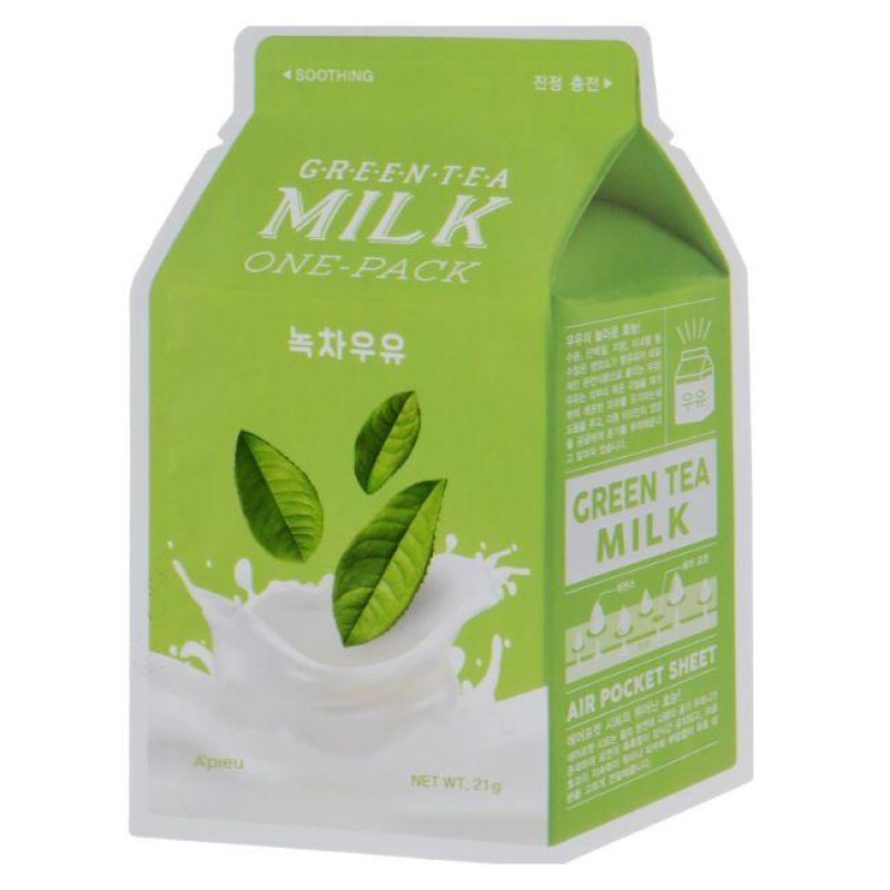 Маска тканинна A'pieu Green Tea Milk One-Pack є незамінним засобом для зволоження та живлення шкіри, вже після кількох застосувань ви отримаєте результат як після відвідування салонних процедур. Цей продукт створений на основі молочних протеїнів , вони мінімізують реакції, викликані роздратуванням шкіри, скорочують час запалення та прискорюють процес регенерації. Екстракт гамамелісу - позбавляє лущення, зміцнює стінки судин, покращує мікроциркуляцію, тонізує і підтягує дерму. Зелений чай – очищує та звужує пори, бореться з в'яненням шкіри, покращує колір обличчя.