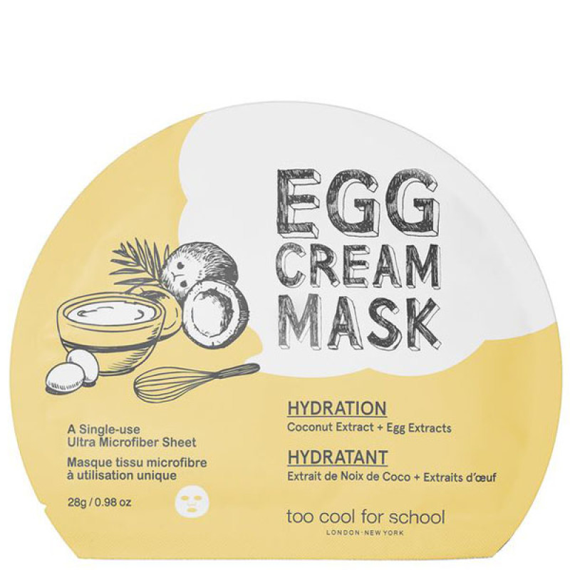 Тканинна маска Too Cool For School Egg Cream Mask Hydration – забезпечує швидке та глибоке зволоження шкіри. Вона інтенсивно живить, повертає здоровий колір обличчя, усуває тьмяність і лущення, робить епідерму гладкою та наповненою.
