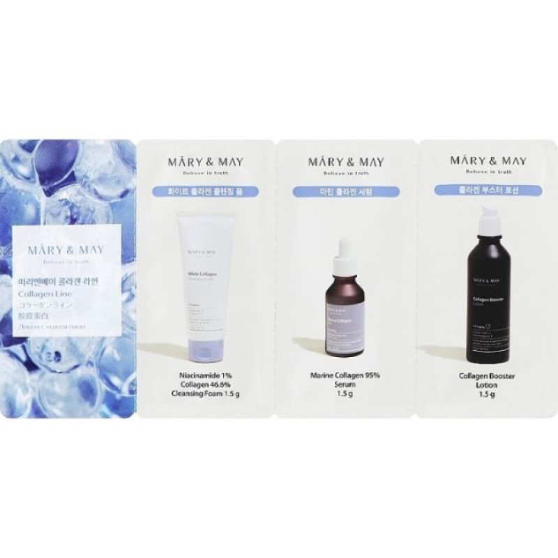 Набір мініатюр для шкіри з колагеном Mary&May Collagen Line 3Step Sachet (Cleansing Foam 1,5g + Seru