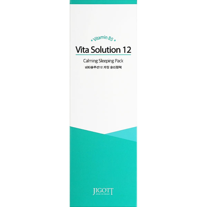 Маска Jigott Vita Solution 12 Calming Sleeping Pack стане помічником у нічному догляді за шкірою, яка дарує відчуття комфорту і забезпечуючи глибоке зволоження. Маска володіє легким розслабающим ароматом, який робить процедуру більш приємною. Основним компонентом маски є вітамін В5, який чудово заспокоює шкіру, зволожуючи її і додають м'якості. Він пришвиджує загоєння ділянок шкіри, залишаючи шкіру гладенькою. Гідрогенізована рицинова олія - компонент, який активно бореться з сухістю і лущенням, відновлюючи природний тонус і блиск шкіри. Алантоїн, екстракти цукрової тростини - зменшує подразнення і заспокоює шкіру. Вітамін Е - потужний антиоксидант, який захищає шкіру від зовнішніх чинників, підвищуючи її стійкість до стресів і уповільнує процеси старіння. Засіб від Jigott ефективно бореться з проявами куперозу. утримує вологу в клітинах шкіри і компенсує нестачу різних вітамінів. Маска робить рельєф шкіри рівномірним, покращує тон обличчя та надає здорового сяяння.