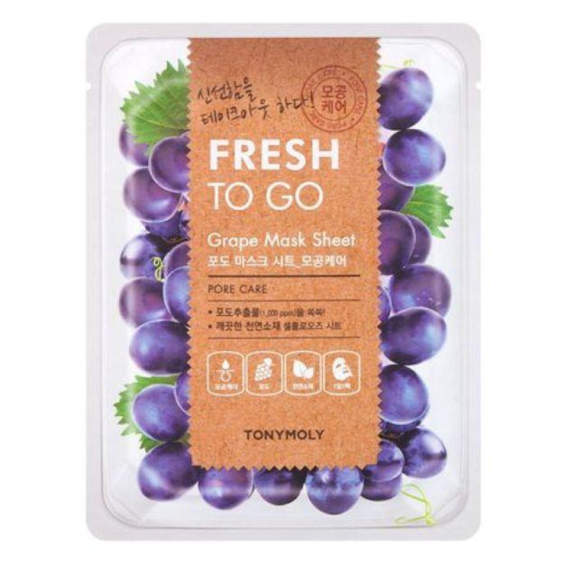 Інноваційна тканинна маска Fresh To Go Grape Mask Sheet забезпечує повноцінне живлення та зволоження шкірних покривів, вирівнює мікрорельєф, усуває зморшки, знімає набряклість. Активні інгредієнти есенції дієво відновлюють пружність та еластичність епітелію, підвищують місцевий імунітет, покращують бар'єрні функції. Засіб розроблений на основі природних компонентів, тому підходить навіть для веганів.