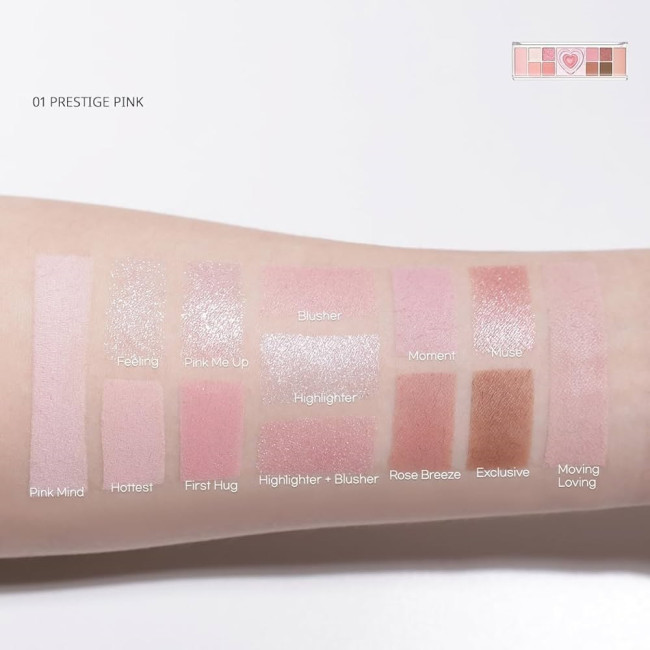 повік, рум'яна та хайлайтер. Палетка розташована в центрі палітри у формі серця