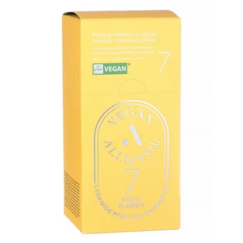 Гель для душу 7 CERAMIDE PERFUME SHOWER GEL_Sweet Flower - гель для душу, який огортає тіло ніжним ароматом солодких квітів та забезпечує комплексний догляд за шкірою. Гель глибоко проникає в шкіру, насичує її натуральними керамідами і оливковою олією, які сприяють утриманню вологи. Гель для душу відновлює шкіру за допомогою екстракту центели азіатської та опунції, які сприяють загоєнню мікротріщин. Засіб делікатно очищує шкіру, не пересушуючи її та зберігаючи природний баланс. Рослинні екстракти кореня солодки та півонії зменшують подразнення та дарують комфорт. Засіб від ALLMASIL створює відчуття свіжості та легкості, а аромат підходить під будь-яку пору року.