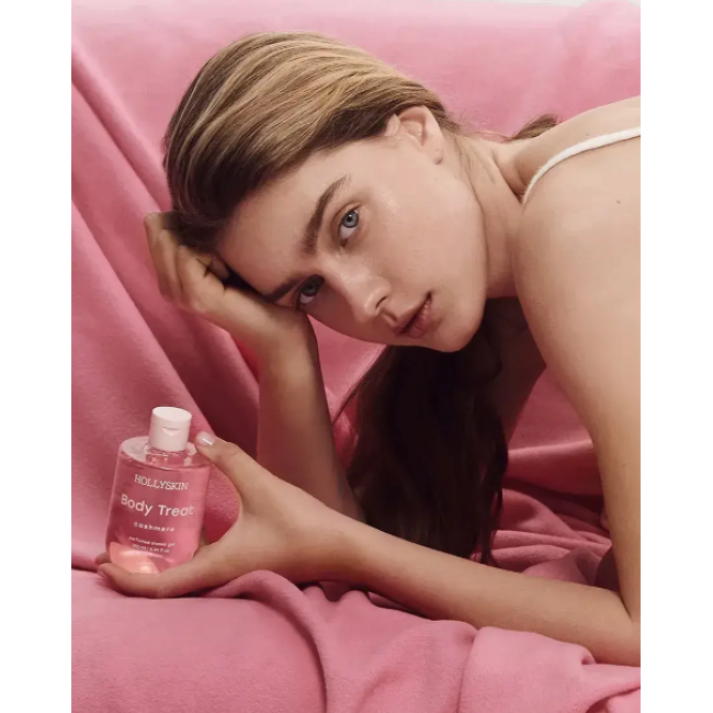 Гель для душу Body Treat Cashmere - очищує шкіру та перетворює щоденний догляд у справжній ритуал задоволення. Засіб створює ніжну шовковисту піну, яка м'яко очищує та зберігає природний гідробаланс шкіри. В складі є бетаїн - зволожує, вітамінізує, робить шкіру м'якою та оксамитовою. Оливкова олія - глибоко живить, заспокоює та створює відчуття комфорту. Гель має вишуканий аромат із поєднання пряних спецій, шафрану та свіжих цитрусових нот. Аромат тримається на шкірі довше за звичайні гелі, даруючи відчуття розкоші протягом дня. Засіб від Hollyskin створює делікатне та ефективне очищення, захист та відновлення бар'єра.