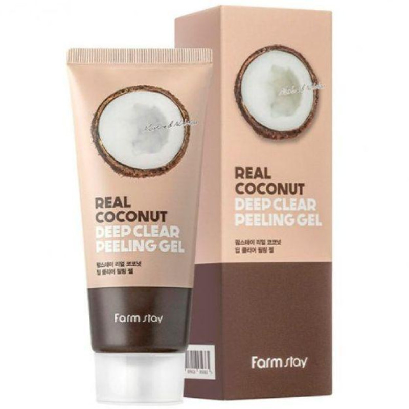 Пілінг-скатка Real Coconut Deep Clear Peeling Gel FARM STAY – покращує тон шкіри, ретельно відлущує відмерлі клітини. Після застосування засобу обличчя стає м'яким, ніжним, бархатистим.