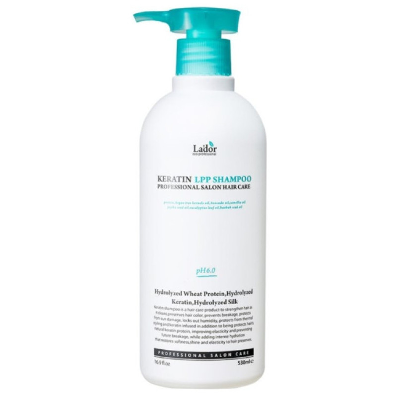 Низькокислотний відновлюючий шампунь Lador Keratin LPP Shampoo призначений для професійного застосування з метою глибокого очищення волосся та шкіри голови, а також поповнення дефіциту білка та інтенсивного живлення волосяної кутикули. Може використовуватись для гіперчутливої шкіри голови.