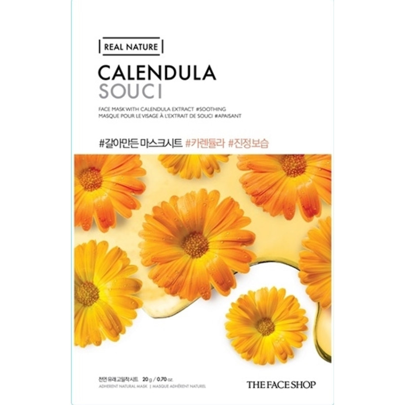 Тканинна маска Real Nature Mask Sheet Calendula допоможе Вам позбутися запалень, подразнень на шкірі, постійної появи вугрів, прищів. Маска ефективна проти акне та куперозу при регулярному застосуванні.