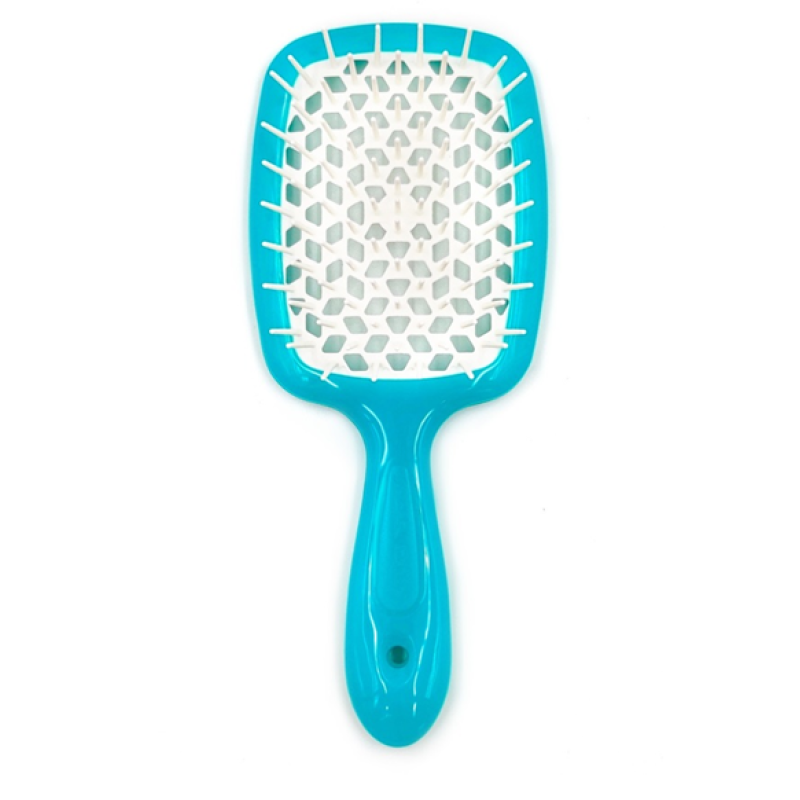 Інноваційна гребінець Superbrush, виконана в бірюзово-білих кольорах, привнесе в звичайну процедуру трохи яскравого настрою. Предмет зроблений із безпечних полімерів із використанням стійких барвників, які не викликають алергії.