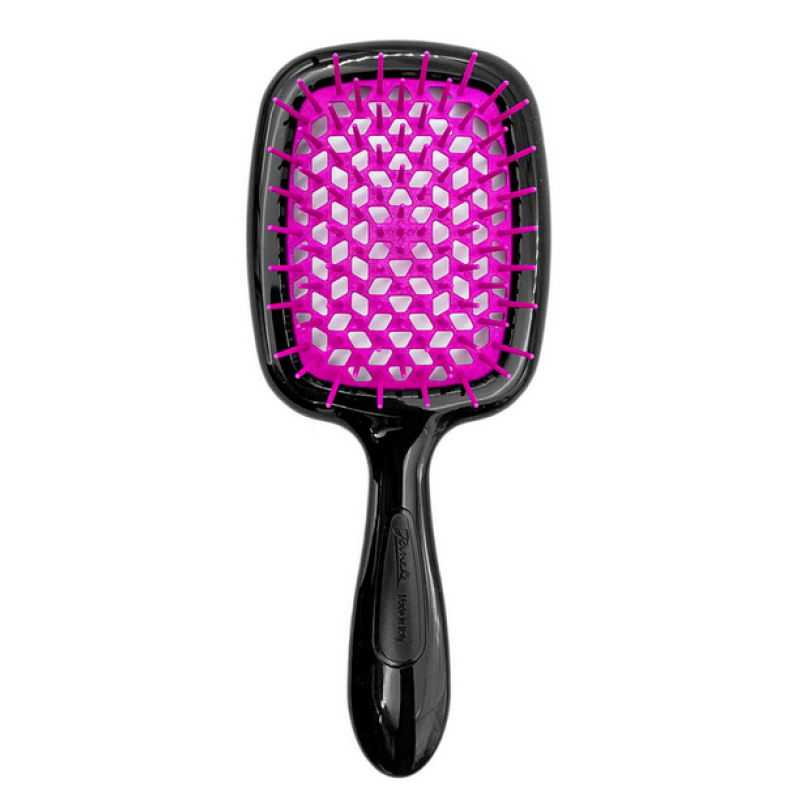 Унікальна запатентована форма основи, виконана у вигляді бджолиних сот , пропускає повітря, довго не забруднюється, легко миється і дуже швидко сохне. Цей фактор позитивно впливає на догляд за аксесуаром. Щоб утримувати її в ідеальному гігієнічному стані, достатньо промити під струменем води та струсити водяні краплі. Ергономічна ручка добре поміщається в кисті руки, не ковзає і не випадає. Щоб створити чудову зачіску в домашніх умовах, варто купити безпечну акуратну гребінець відомого виробника аксесуарів для волосся Janeke . Інтернет-магазин Cosmic пропонує покупцям кілька кольорових варіацій цього предмета гігієни: чорний, чорно-фіолетовий, чорно-блакитний, чорно-зелений.
