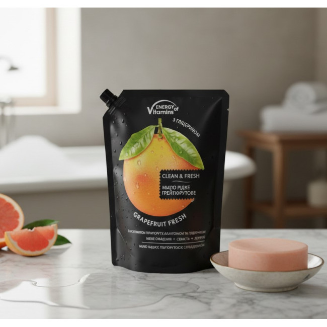 Рідке мило Грейпфрутове ENERGY of Vitamins — це ідеальне поєднання глибокого очищення та вітамінного догляду для вашої шкіри. Продукт від відомого українського бренду Energy Of Vitamins створений для того, щоб щоденна гігієна приносила максимум користі та задоволення. Це мило для рук ефективно видаляє забруднення та бактерії, не пересушуючи епідерміс навіть при частому використанні. Екстракт грейпфрута, що входить до складу, має природні антисептичні властивості, тонізує шкіру та дарує потужний заряд бадьорості завдяки яскравому цитрусовому аромату. Зручний формат «Duo-Pack» забезпечує вигідне та тривале використання, роблячи засіб незамінним помічником для всієї родини.
