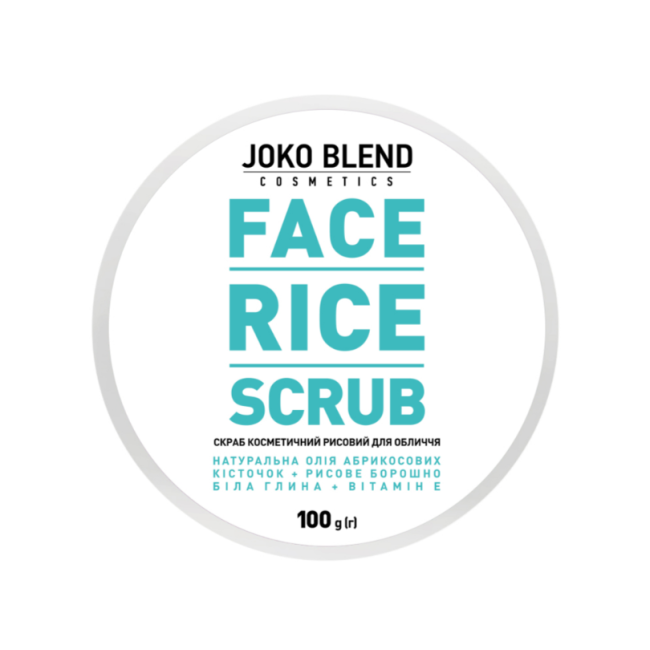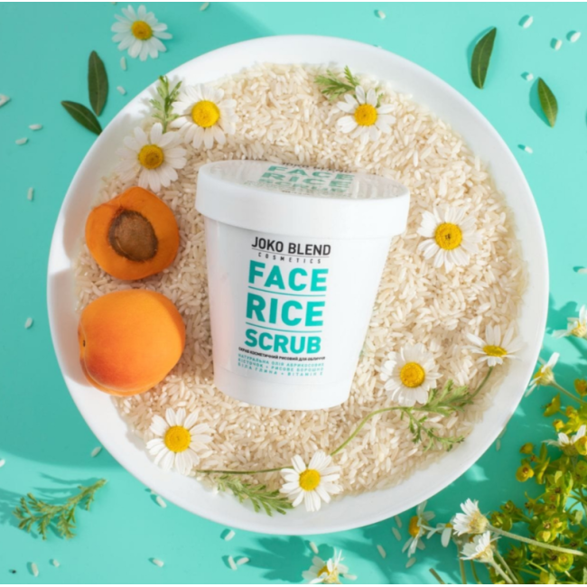 Рисовий скраб Face Rice Scrub - делікатний засіб для глибокого очищення та оновлення шкіри. Скраб ефективно видаляє ороговілі клітини й забруднення, не пошкоджуючи шкіру завдяки своїй дрібній текстурі. В складі є рисове борошно, яке глибоко очищає пори, покращує мікроциркуляцію крові, вирівнює тон шкіри та допомагає підтримувати зволоження. Олія кісточок абрикоса живить шкіру, робить її м'якою та пружною. Натуральні трави м'яко відлущують, сприяють оновленню епідермісу, зменшують запальні процеси і допомагають запобігти появі висипань. Після постійного використання шкіра стає гладенькою, свіжою та доглянутою, а пори стають менш помітнішими. Засіб від Joko Blend володіє легким відбілювальним ефектом, що допомагає покращити загальний стан обличчя.