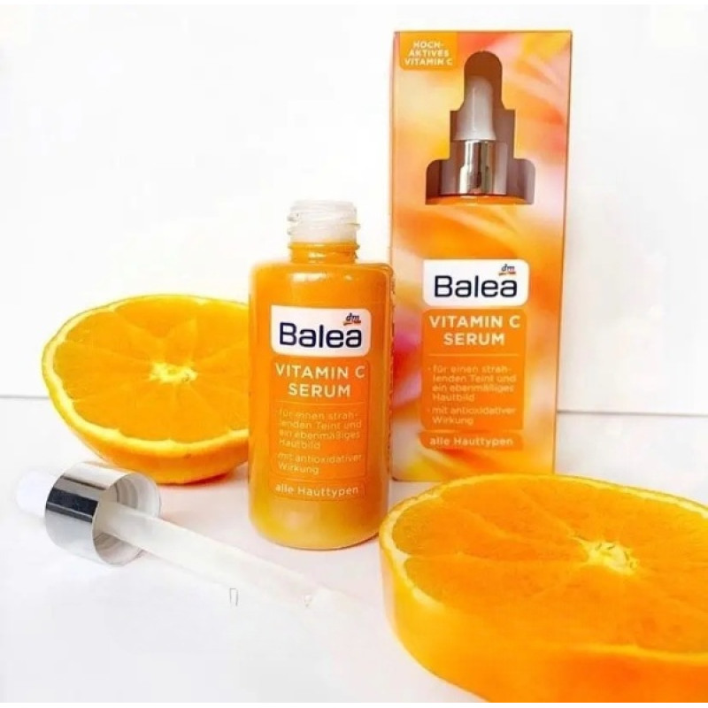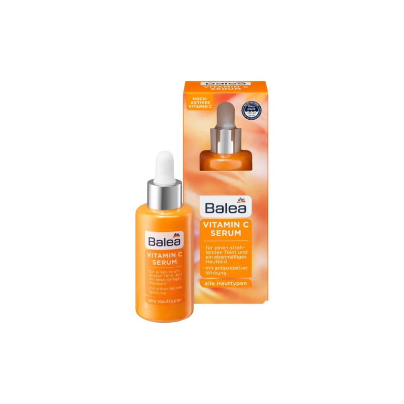 Сироватка Vitamin C Serum - дарує легкість і свіжість, робить шкіру доглянутою після використання. Вітамін С- подарує розкішний цитрусовий аромат, вирівнює тон шкіри, надасть сяйва і легкого рум'янцю. Засіб інтенсивно зволожує шкіру, допомагає утримувати вологу в глибоких її шарах, усуває сухість і лущення. Сироватка має антиоксидантну дію, бореться з впливом навколишнього середовища і допомагає сповільнити процеси старіння. В складі є масло абрикосової кісточки, яке тонізує, освіжає шкіру та знімає почервоніння. Ацерола - допомагає зменшити темні плями та нерівності тону. Засіб стимулює природний синтез колагену, підвищує пружність і еластичність шкіри. Засіб від Balea розгладжує дрібні зморшки і тонкі лінії.