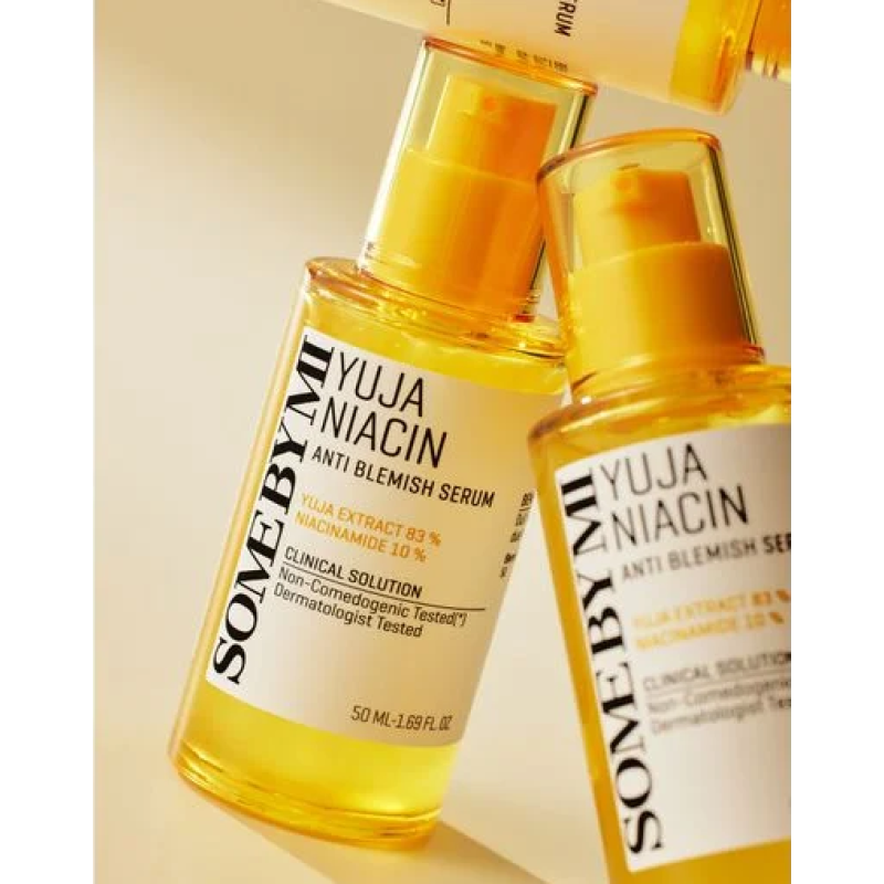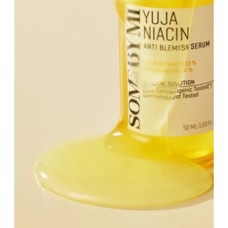 Сироватка Yuja Niacin Blemish Serum - бореться з тьмяністю, пігментними плямами та почервонінням. Засіб має потужні освітлювальні та відновлювальні функції, які покращують текстуру епідермісу, борються з антивіковими змінами. В складі є 10% ніацинаміду, який ефективно освітлює пігментацію і вирівнює тон. Екстракт плодів юзу - насичує шкіру антиоксидантами і повертає природне сяйво. Аденозин - зменшує помітність зморшок і дрібних ліній, стимулює клітинне оновлення. Витяжка кореня солодки- заспокоює подразнення та почервоніння. Комплекс вітамінів живить і зміцнює епідерміс. Сироватка освітлює шкіру та допомагає появі нових плям на шкірі, робить шкіру гладкою, пружною та еластичною. Засіб від Some By Mi має освіжаючий аромат цитрусових і після використання створює приємне відчуття прохолоди.