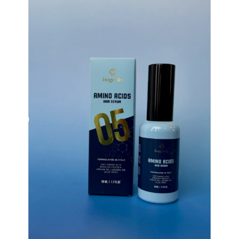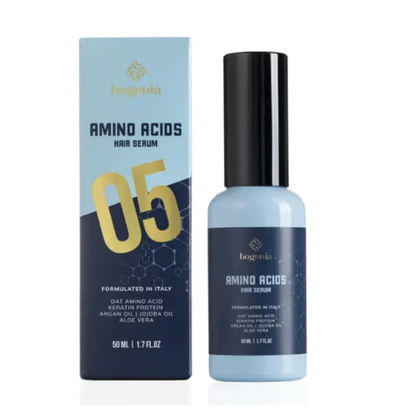 Сироватка Amino Acids Hair Serum наповнена амінокислотами, кератином і аргановою олією, які глибоко проникають в структуру волосся, надають йому природної сили, гладкість і дзеркальний блиск. Активні компоненти відновлюють структуру волосся, оскільки миттєво проникають і зміцнюють його зсередини. Легка формула засобу не обтяжує волосся, тому волосся буде свіжим і блискучим. Сироватку можна використовувати після кожного миття голови, даруючи відчуття легкості і доглянутості. Вся лінійка Bogenia Amino Acids створена для комплексного догляду, який зміцнює, відновлює та дарує волоссю бездоганний вигляд.