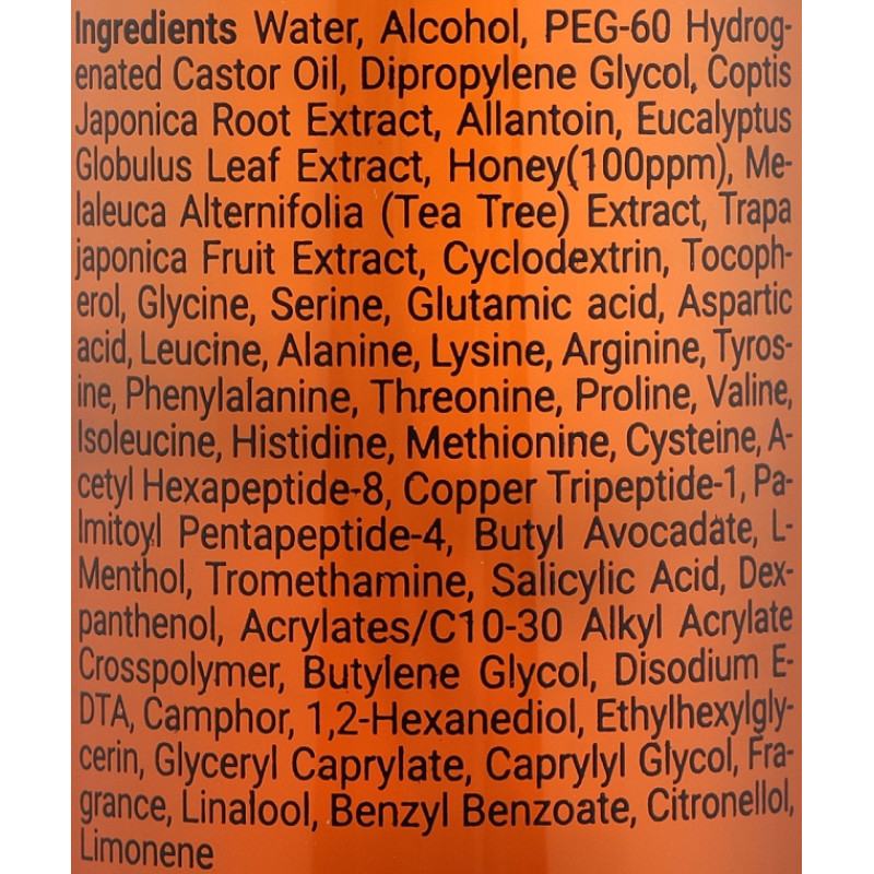 Globulus Leaf Extract, Honey(100ppm), Melaleuca Alternifolia (Tea Tree)