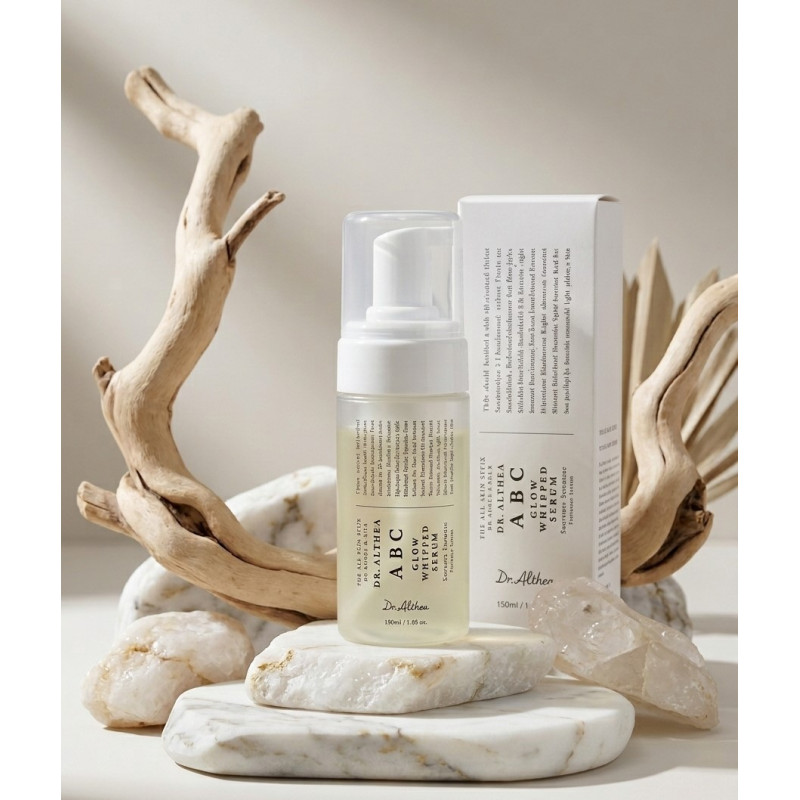 Сироватка-пінка для зволоження та сяйва шкіри Dr.Althea ABC Glow Whipped Serum — це революційний продукт, що поєднує в собі легкість повітряного мусу та ефективність концентрованої сироватки. Засіб від преміального корейського бренду Dr.Althea створений для миттєвого перетворення тьмяної, втомленої та зневодненої шкіри. Ця інноваційна сироватка насичена вітамінами та антиоксидантами, які працюють над вирівнюванням тону, зміцненням захисного бар'єру та створенням ефекту «скляної шкіри» (glass skin). Текстура збитих вершків дозволяє активним компонентам глибше проникати в епідерміс, не залишаючи липкості, та забезпечує пролонговане зволоження протягом усього дня.