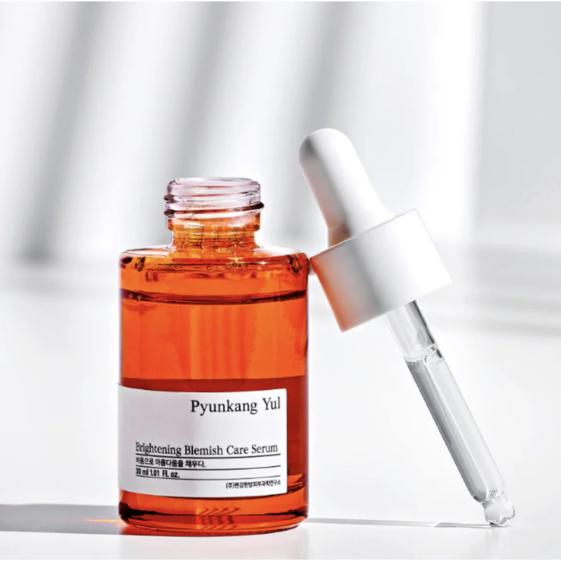 Сироватка Brightening Blemish Care Serum - створена для боротьби з тьмяністю, неоднорідністю кольору обличчя, пігментними плямами та постакне, забезпечуючи оновлення клітин після декількох застосувань. В складі є чистий вітамін С -потужний антиоксидант, який нейтралізує вільні радикали і бореться з пігментацією, висипаннями, надає сяйва і пружності, запобігаючи появі зморшок. Ніацинамід і аденозин - освітлюють, зменшують зморшки та сліди втоми, нормалізуючи вироблення себуму і зміцнюючи шкірний бар'єр. 6 типів гіалуронової кислоти - глибоко зволожують, усувають подразнення, знімають почервоніння, лущення та свербіж. Екстракти кореня шовковиці та перлів - покращують колір обличчя, борються з недосконалостями, дарують здорове природне сяйво. Сироватка зробить шкіру помітно гладкішою, зволоженою, рівномірною, без тьмяностей, запалень та пігментних пятен. Засіб від Pyunkang Yul для тих, хто потребує освітлення, вирівнювання тону та потужного зволоження шкіри.