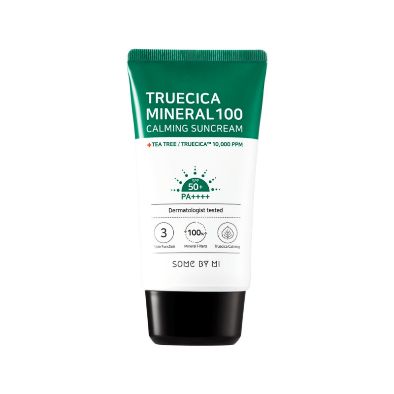 Сонцезахисний крем SOME BY MI Truecica Minera 100 Calming Suncream SPF - ультразволожуючий, заспокійливий УФ-протектор з найвищим ступенем захисту від ультрафіолетових променів. SPF 50PA++++. Забезпечує максимальний захист та ефективний догляд за шкірою одночасно. Не обтяжує шкіру та не забиває пори. Має пролонговану дію.