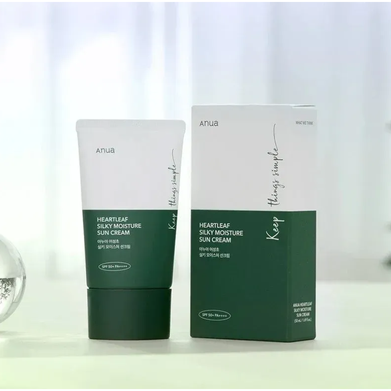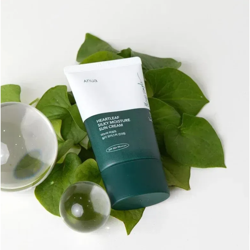Сонцезахисний крем Heartleaf Silky Moisture Sun Cream SPF 50+ PA++++ - це мінеральний засіб, який поєднує надійний захист від сонця з активними доглядовими компонентами, які допомагають зберегти шкіру здоровою, зволоженою та врівноваженою. Завдяки фізичному фільтру крем делікатно діє на чутливу шкіру, не спричиняючи подразнень, а біоактивні екстракти зменшують запалення, почервоніння та прояви акне. В складі є центелла азійська, яка сприяє загоєнню мікропошкоджень, зменшує запалення та почервоніння, стимулює регенерацію. Екстракт полину - має антиоксидантну та протизапальну дію, заспокоює шкіру та зменшує її чутливість. Гауттюйнія - потужна антимікробна дія, зменшення запалень та висипань. Екстракт чайного дерева - ефективний проти бактерій, що викликають акне. Крем має потужний SPF-захист від UVA/UVB-променів, легку текстуру без білих слідів та відчуття жирності, заспокоює, оздоровлює та зволожує шкіру при щоденному використанні. Засіб від Anua вибір для тих, хто хоче поєднати захист, догляд і профілактику недоліків шкіри в одному продукті.