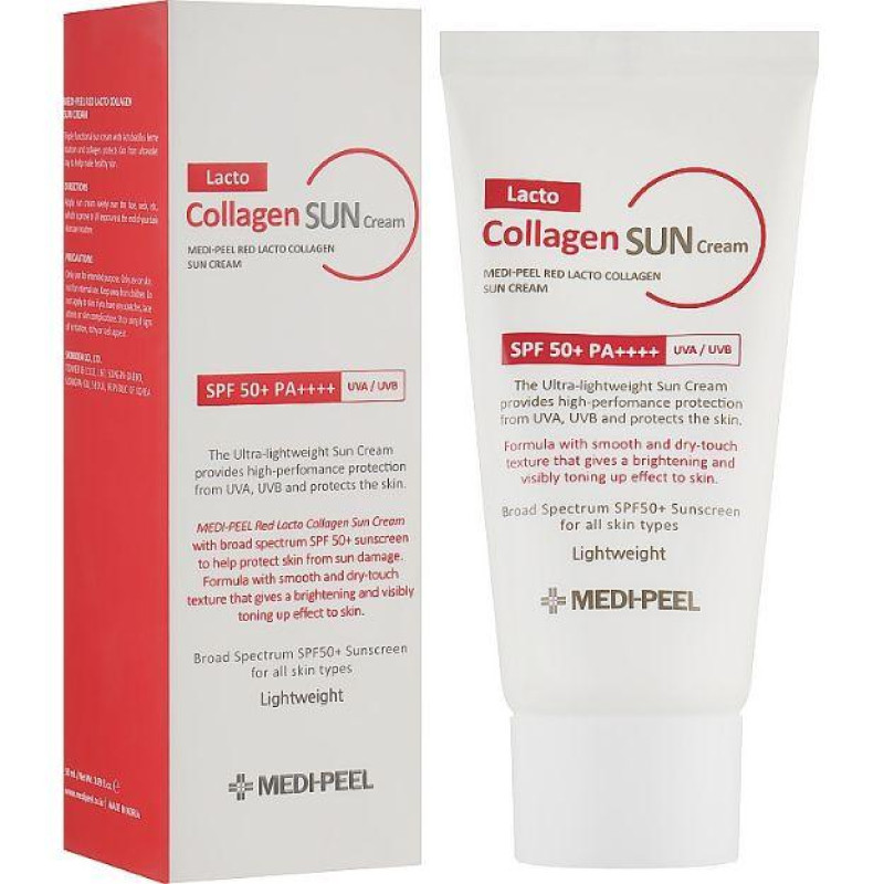 Професійний крем з колагеном Red LactoCollagen SunCream SPF50+PA++++ надає комплексний позитивний вплив на епітелій. Він надійно захищає від сонячного випромінювання, вирівнює тон і мікрорельєф шкіри, уповільнює фотостаріння.