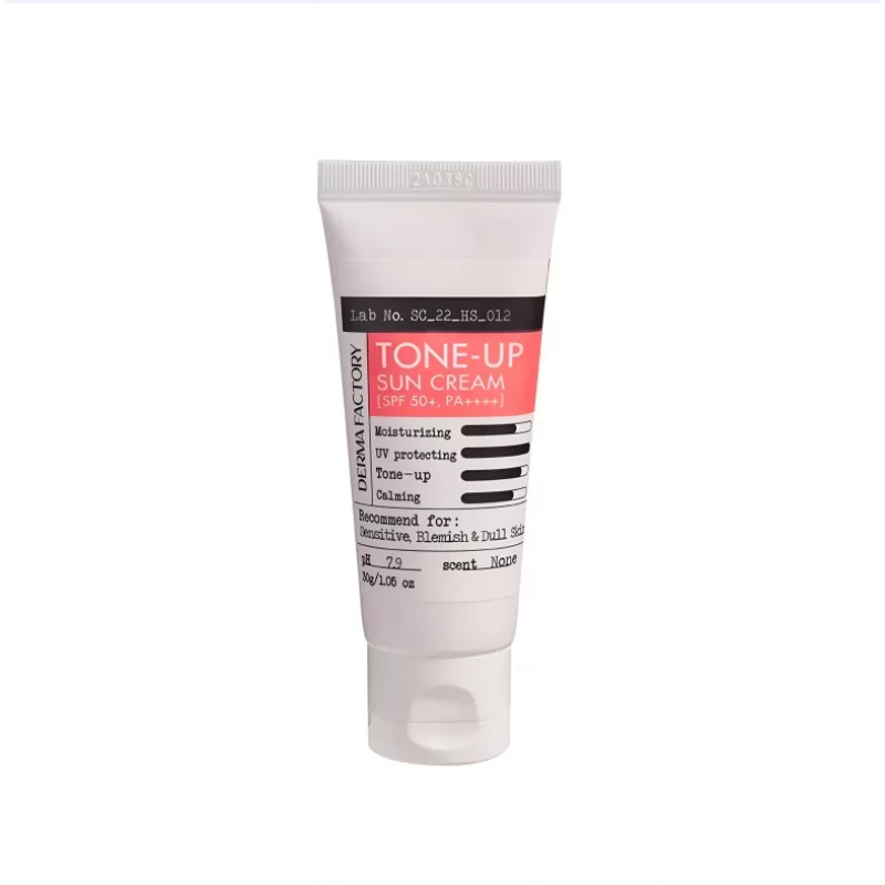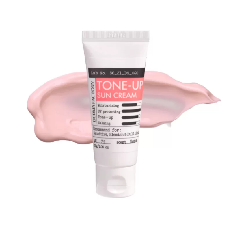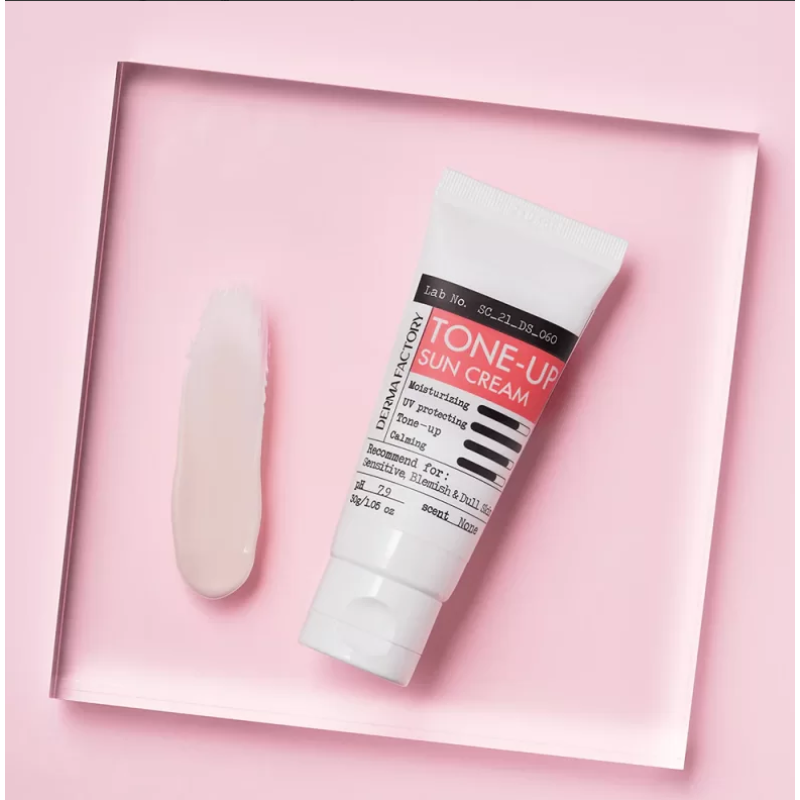 Крем TONE-UP SUN CREAM - володіє високим захистом від UVA/UVB (SPF 50+ PA++++), а також має тонувальний ефект. В складі є екстракт даманської троянди, який тонізує, освітлює та зволожує. Екстракт бамбука - глибоко зволожує, зменшує набряки і бореться з першими ознаками старіння. Екстракт алое- заспокоює, відновлює тургор, підвищує пружність та гладкість шкіри. Ніацинамід - має заспокійливі та протизапальні властивості, відновлює шкіру та регулює вироблення себуму. Крем складається виключно з фізичних фільтрів, які помірно зволожують та матують шкіру, вирівнюють відтінок та маскують недоліки. Засіб від DERMAFACTORY дуже знадобиться в сонячну і жарку погоду для захисту шкіри від ультрафіолету.
