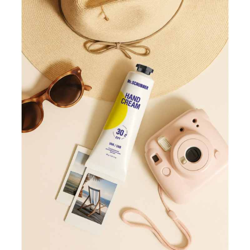 Крем для рук Hand Cream SPF 30 - це особливий догляд за руками, які стикаються з агресивними зовнішніми чинниками. Засіб дарує інтенсивне зволоження та ефективний захист в будь-яку пору. Формула засобу насичує шкіру вологою, допомагає утримувати її в глибоких шарах шкіри, попереджаючи сухість, лущення та ознаки старіння. Великою перевагою засобу буде високий рівень SPF 30, який надійно захищає від UVA/UVB-випромінювання, уповільнюючи процеси фотостаріння та запобігає появі пігментних плям. В кремі присутні сучасні UV-фільтри, які демонструють тривалий та стійкий захист. В складі є пробіотики Lactobacillus, які стимулюють регенерацію, сприяють виробленню колагену та підтримують мікробіом шкіри. Крем працює над відновленням бар'єра шкіри та здорового вигляду шкіри. Засіб від Mr.Scrubber демонструє захист від подразнень, сухості та зовнішніх чинників.