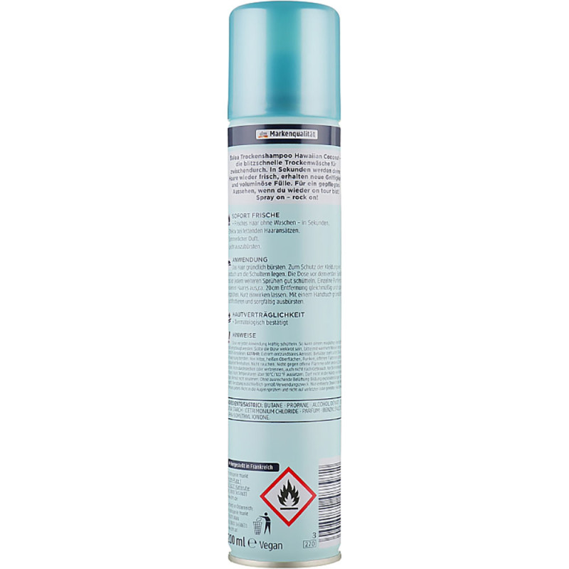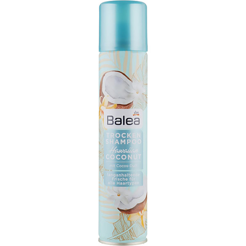 Сухий шампунь Balea Hawaiian Coconut Dry Shampoo - стане ідеальним рішенням для тих, кому бракує часу і треба швидко освіжити зачіску. Засіб розроблений для використання на сухе волосся, він ефективно видаляє надлишки себуму, прибирає забруднення і волосся повертає свою чистоту та об'єм. Шампунь ефективно очищує шкіру голови і волосся залишається свіжим без миття. В складі є рисовий крохмаль - природний абсорбент, поглинає вологу і забруднення, заспокоює шкіру голови і запобігає подразненням. Сухий шампунь не викликає дискомфорт і свербіння, підтримує чистоту волосся до 6 годин і не залишає білих слідів. Засіб від Balea має приємний тропічний аромат кокосу, робить волосся легким і об'ємним, а також економічний у використанні.